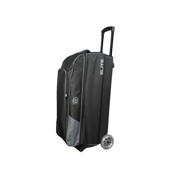 The Elite 3 Ball Roller bag was designed with simplicity in mind without sacrificing craftsmanship. The bag base is sturdy and securely holds up to 3 bowling balls in place. The shoe compartment will hold up to 2 pairs of men’s size 15 shoes along with bowling accessories. This streamlined bag utilizes great wheels and a retractable handle to offer the ideal bowling bag to meet the needs of a bowler.