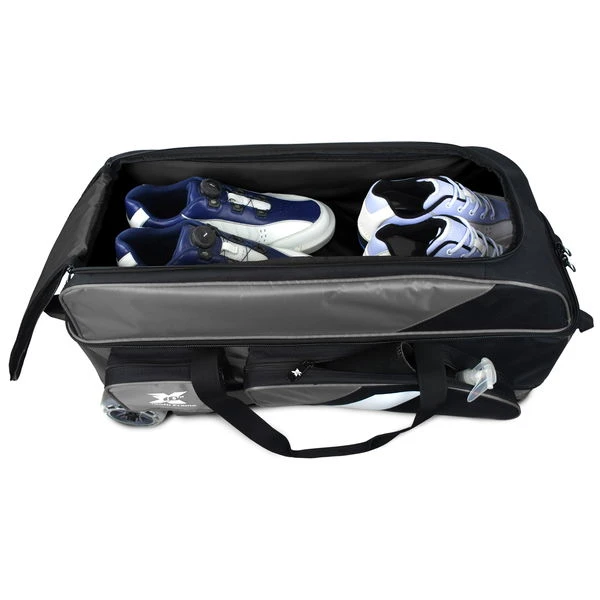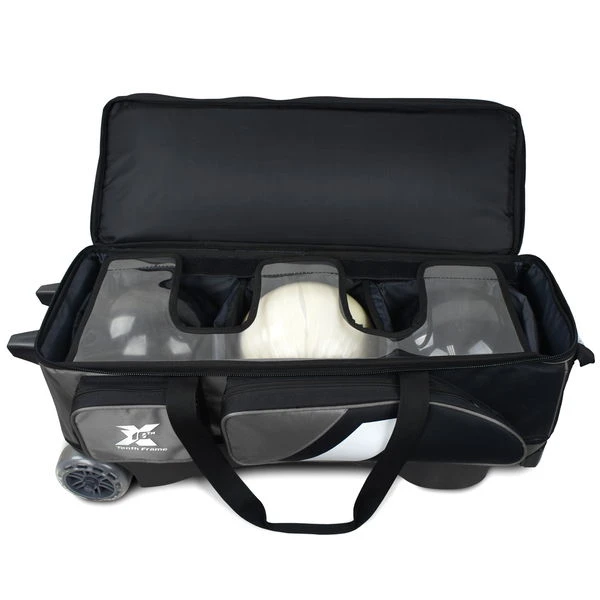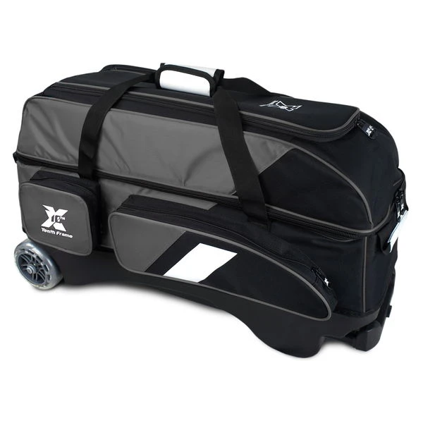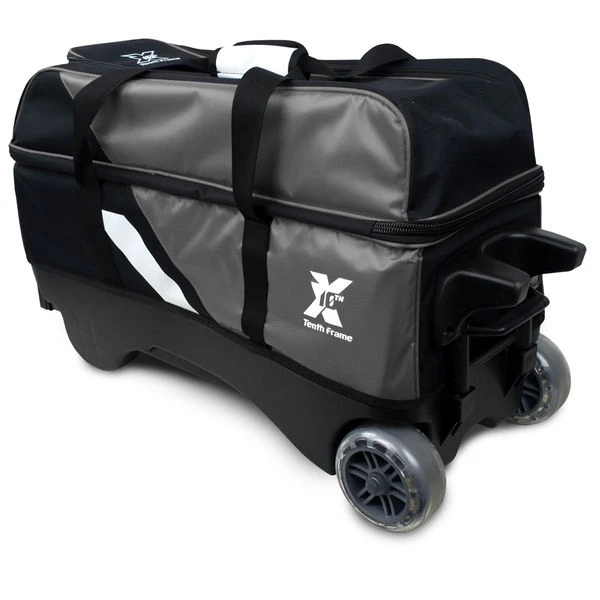 The Tenth Frame Deluxe 3 Ball Roller is back with a fresh style! This premier roller bag freatures 2 side accessory compartments, dual lift straps for easy lifting, fully lined & padded ball compartment plus security straps to keep your balls in place, and to top it all off an oversized shoe compartment that fits 2 pairs of shoes! The extra wide wheels keep you rolling smoothly without a care!